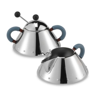 Alessi Michael Graves Design Series Stainless Steel Creamer & Sugar Bowl Set - BluePart of the celebrated line designed by Michael Graves. The creamer & sugar set features 18/10 stainless steel construction and each have a 7oz capacity.Made in ItalyFounded in 1921 ... View Full Source